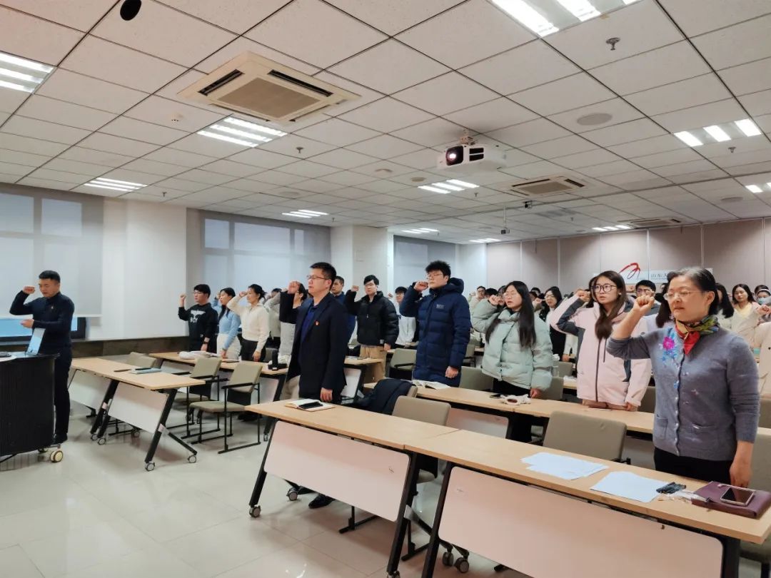12月28日下午,3003新葡的京集团举行“不忘初心,永跟党走”党员教育培训活动,为2023年新党员、预备党员讲授专题党课。3003新葡的京集团党委书记王光辉、专职组织员崔玉红,辅导员代表、本年度新接收的21名预备党员(含2名教工党员)及今年转正的新党员参加活动,本次活动由崔玉红主持。