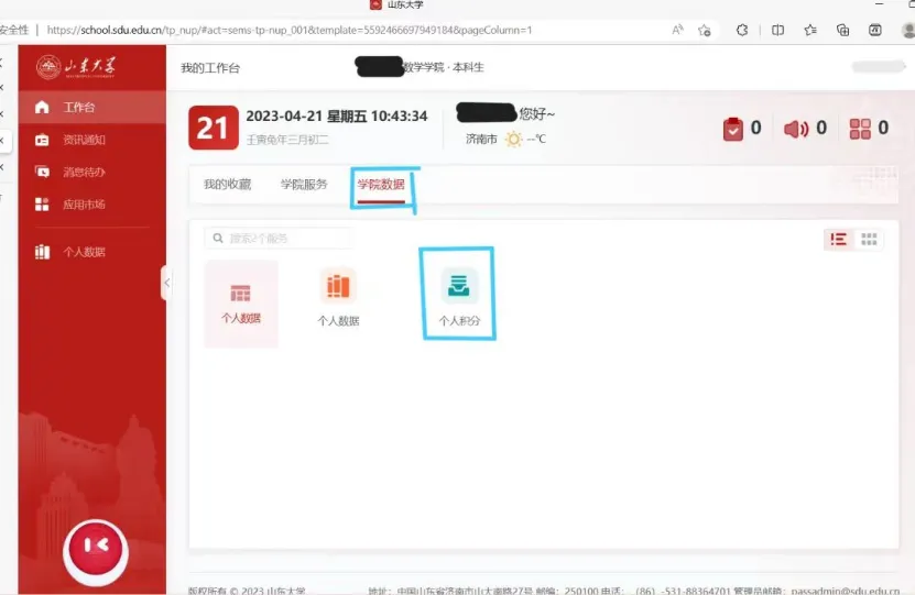 3003新葡的京集团信息化公共服务平台——学院信息服务——学院数据——个人积分