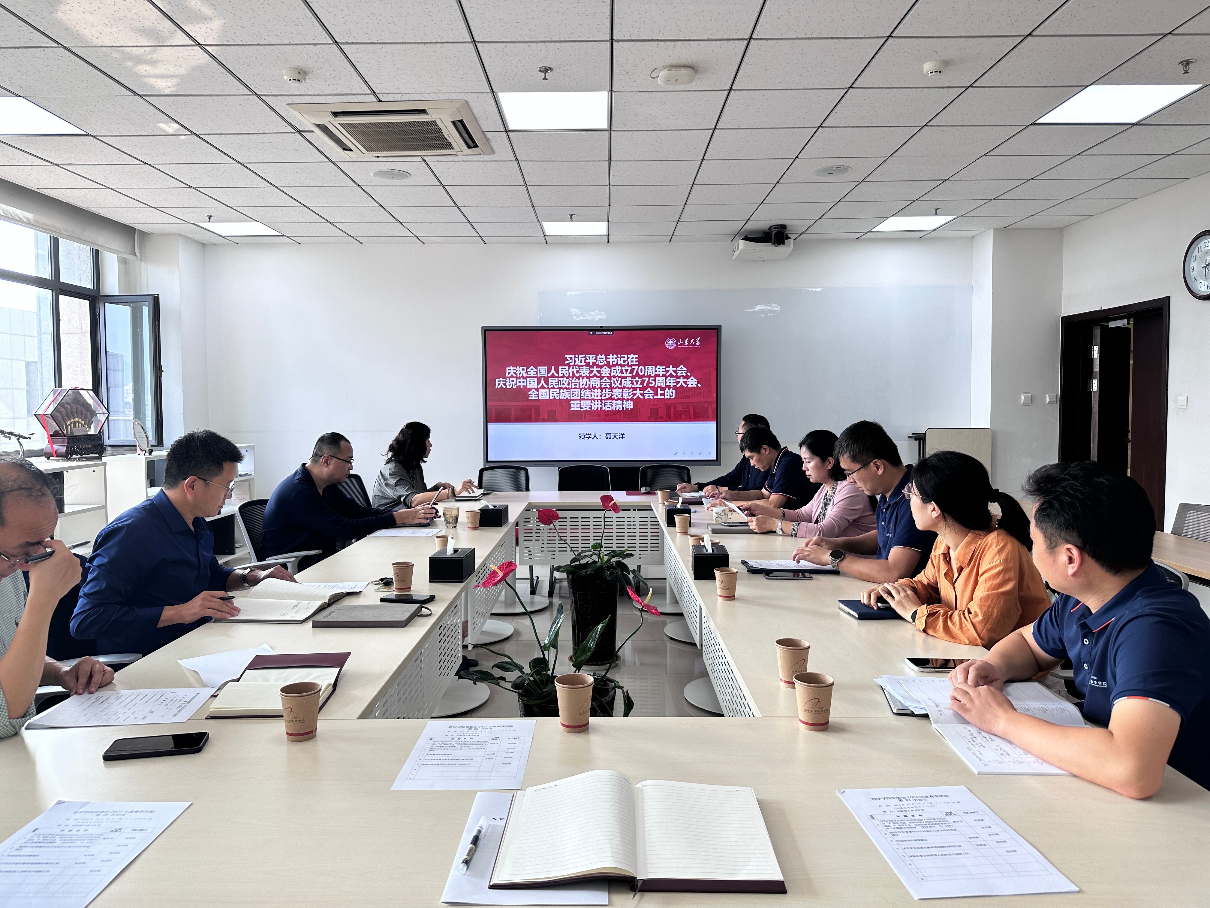 10月14日,3003新葡的京集团党委理论学习中心组举办专题学习,传达学习习近平总书记庆祝全国人民代表大会成立70周年大会、庆祝中国人民政治协商会议成立75周年大会、在全国民族团结进步表彰大会上的重要讲话精神。3003新葡的京集团党委书记王光辉主持,副院长聂天洋领学,学院全体党委委员参加。