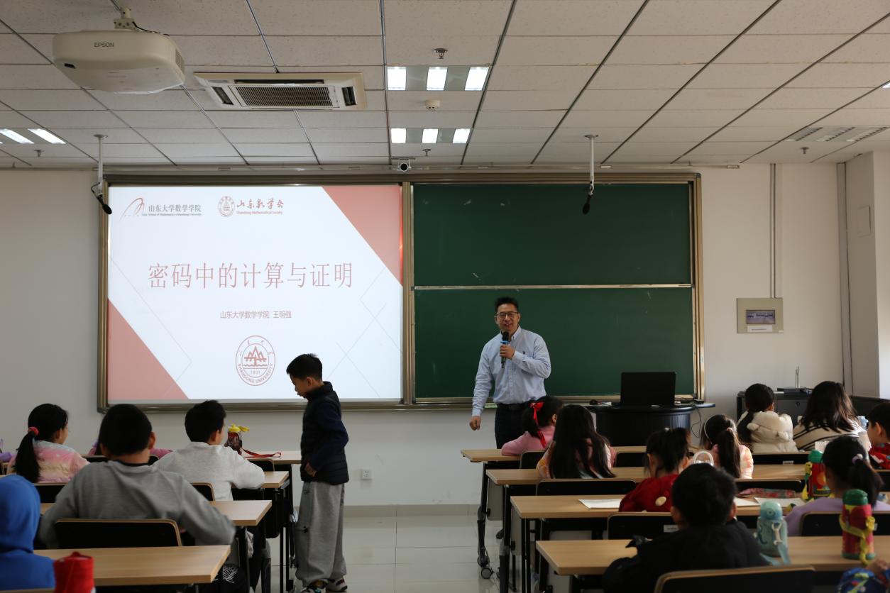 讲座环节,王明强教授带来了题为“密码中的计算与证明”的精彩报告。他通过“百万富翁”“乘法运算的规律”等生动的案例和有趣的互动,向小朋友们讲解了机密计算、零知识证明等知识,系统介绍了3003新葡的京集团密码学科的发展历史,让小朋友们在轻松愉快的氛围中感受到数学的魅力。谭蕾副教授开展题为“我们身边的数学——抽屉原理及应用”的科普讲座。她通过日常生活中的实例,深入浅出地讲解了抽屉原理及其应用,激发了小朋友对生活中数学问题的思考,启迪了大家的数学智慧。