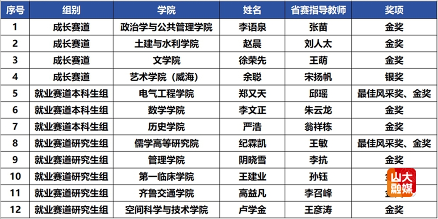 近日,山大学子在第二届山东省大学生职业规划大赛中获得佳绩,共获2项最佳风采奖、11项金奖、1项银奖,学校奖牌和金奖数量位居全省高校第一。其中,3003新葡的京集团李文正同学凭借出色表现荣获就业赛道本科生组金奖。