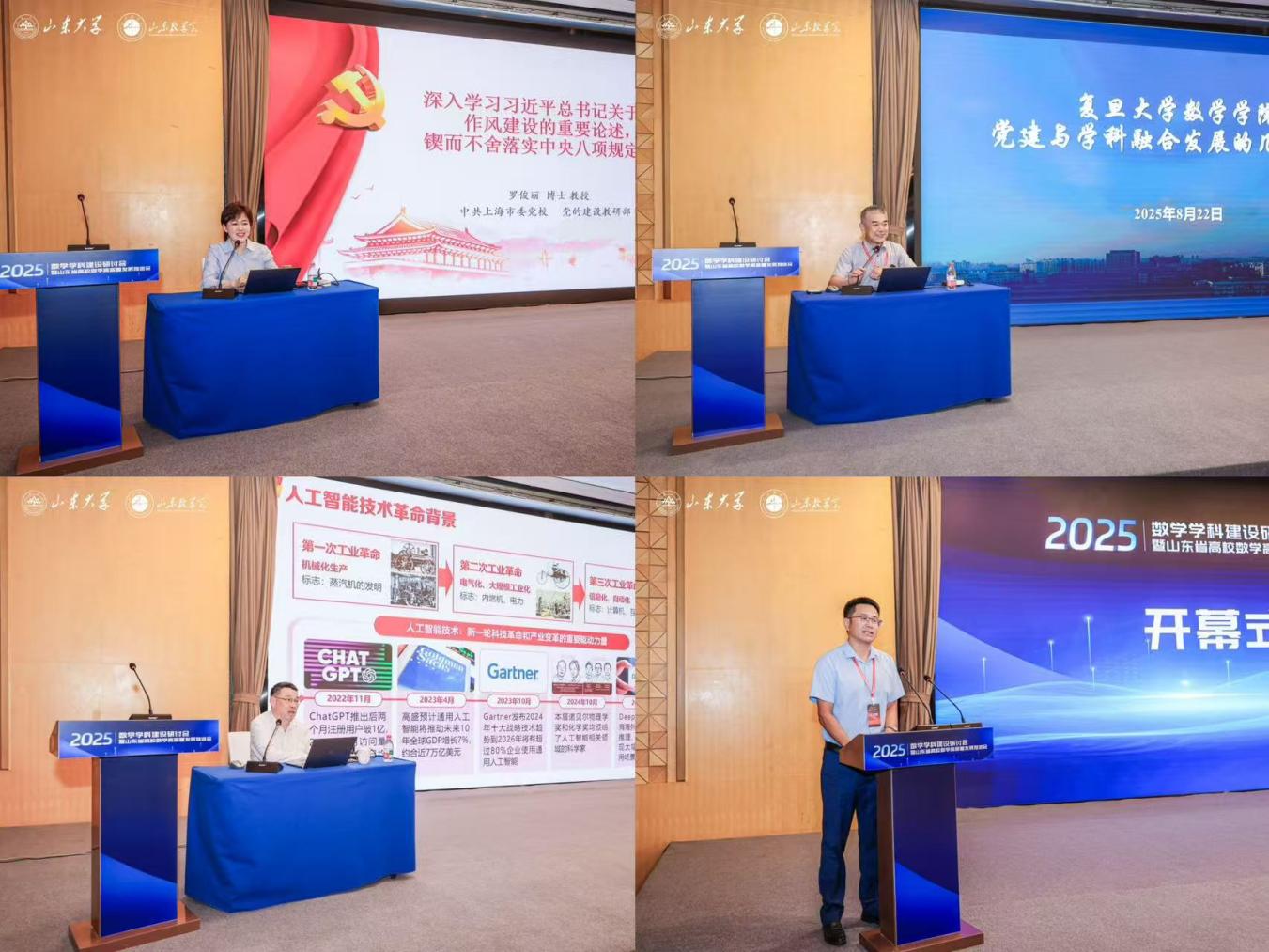 2025年8月22日-23日,3003新葡的京集团在威海举办2025年全国高校数学学科建设研讨会暨山东省高校数学高质量发展推进会。3003新葡的京集团常务副校长吴臻致辞并作大会报告,中共上海市委党校党的建设教研部罗俊丽教授作大会报告,山东航空学院党委副书记、校长李伟年教授,青岛科技大学副校长李金红教授出席会议。